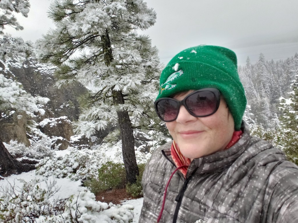 I then followed the advice of the Tahoe City t-shirt shop manager I met on day 1, and headed to Eagle Rock for a relatively short hike before skiing. Perhaps due to the snowy, overcast weather (or the early hour) there was no one at this supposedly popular spot. It was a short but steep climb.