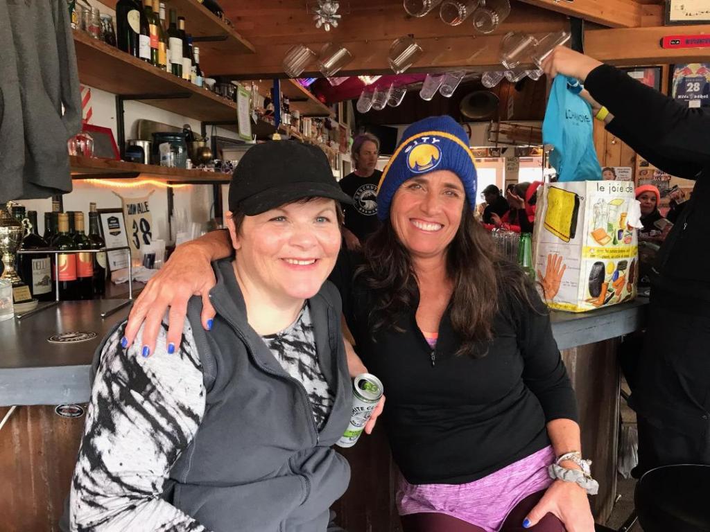 Back to the mountain, and we tried more runs on the back side of the mountain. We skied until last chair. The Mountain Run back to base lodge was the only area that was a bit muddy due to heavy traffic. I skied back to Squaw Valley Lodge and did some laundry, then met Cherie and more of her friends at Le Chamois Loft Bar. Cherie treated me to what the group was drinking: White Claws.